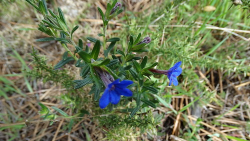Voltei a olhar o chão de onde me espreitavam lindas flores selvagens, espontando, aqui e ali, por entre os arbustos que tinham sido fustigados por chuvas zurradas pelo vento e, entre elas, as flores azuis, às quais, popularmente, é dado o nome das "sete sangrias". A seu lado, outras todas felizes a contemplar-me, na minha alegria de caminhar ao sol.